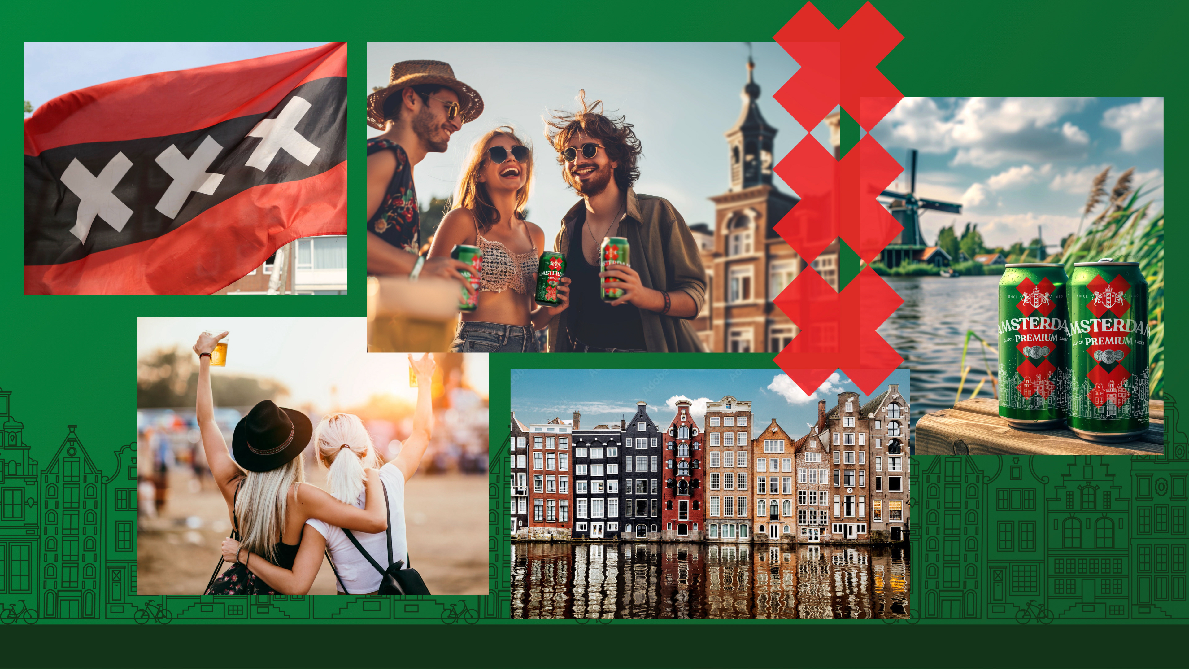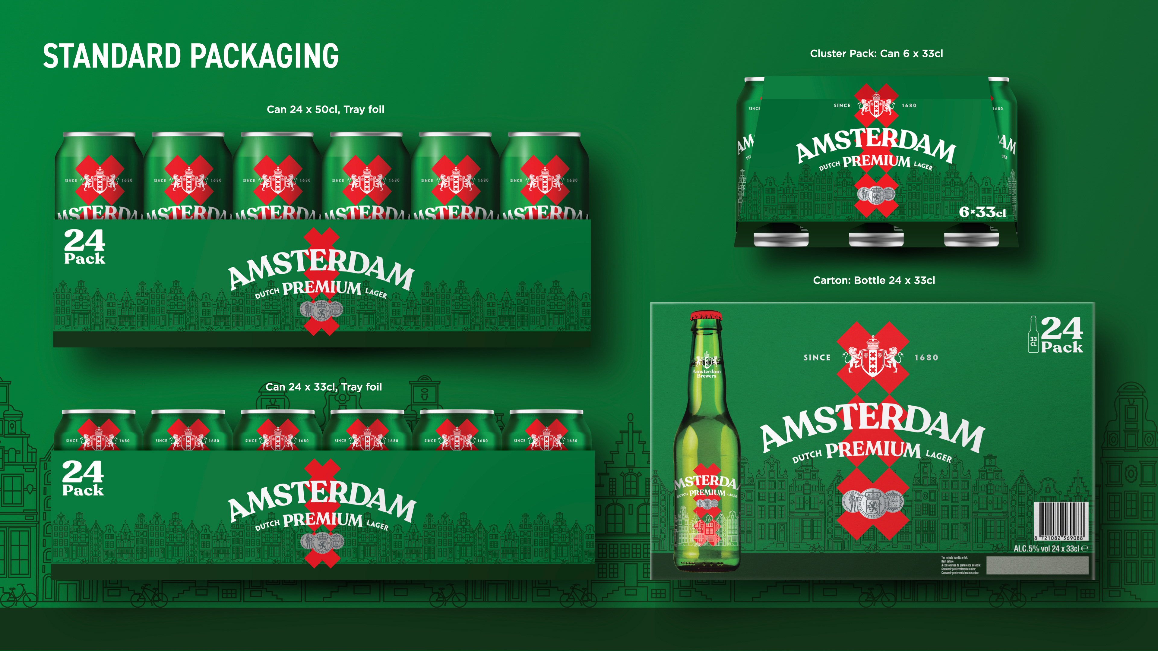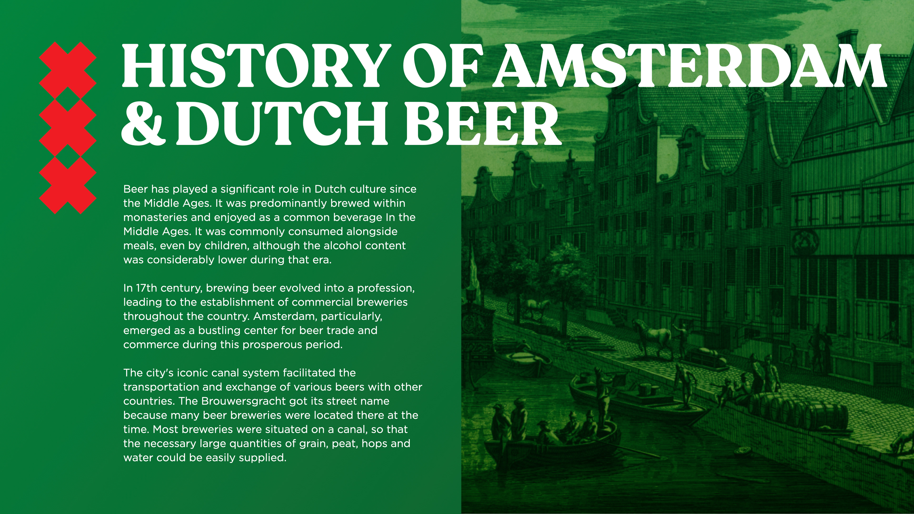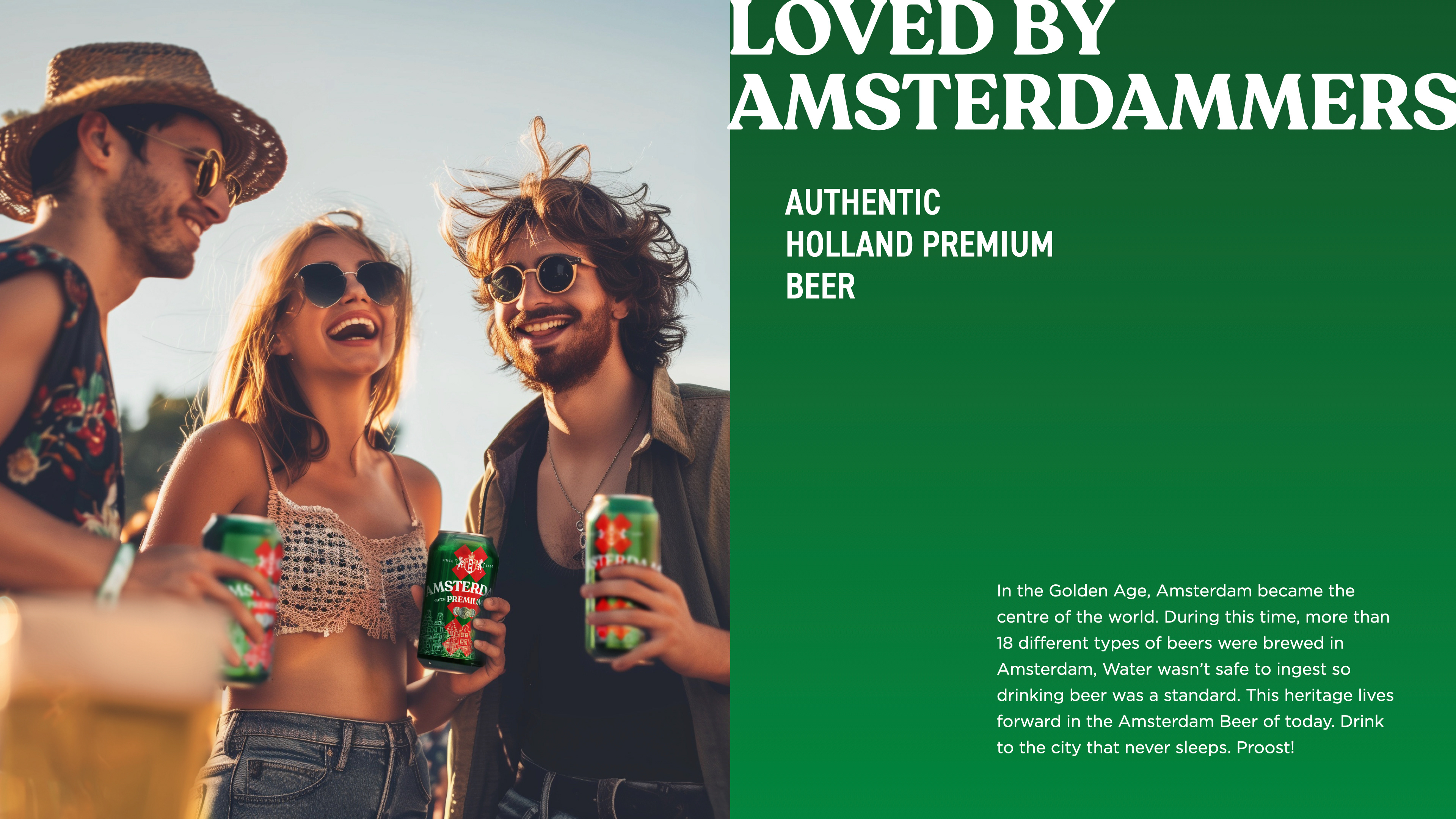 I was responsible for the brand design of Amsterdam Beer, a lager brewed in the Netherlands, which includes the logo, packaging, and website. The client requested a design that communicates its identity as Amsterdam beer, is friendly, and maintains a classic style without becoming too casual like contemporary craft beer designs, ensuring it would be timeless. In response, I arranged the traditional Amsterdam red XXX mark and a charming view of the houses against a green background that complements the Amsterdam Beer bottle.