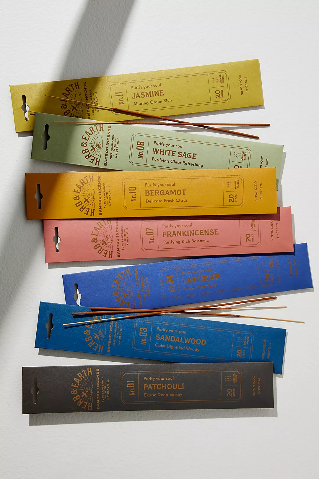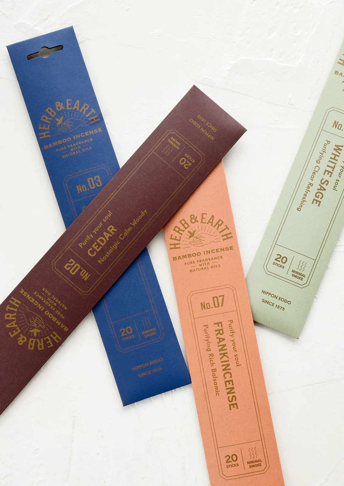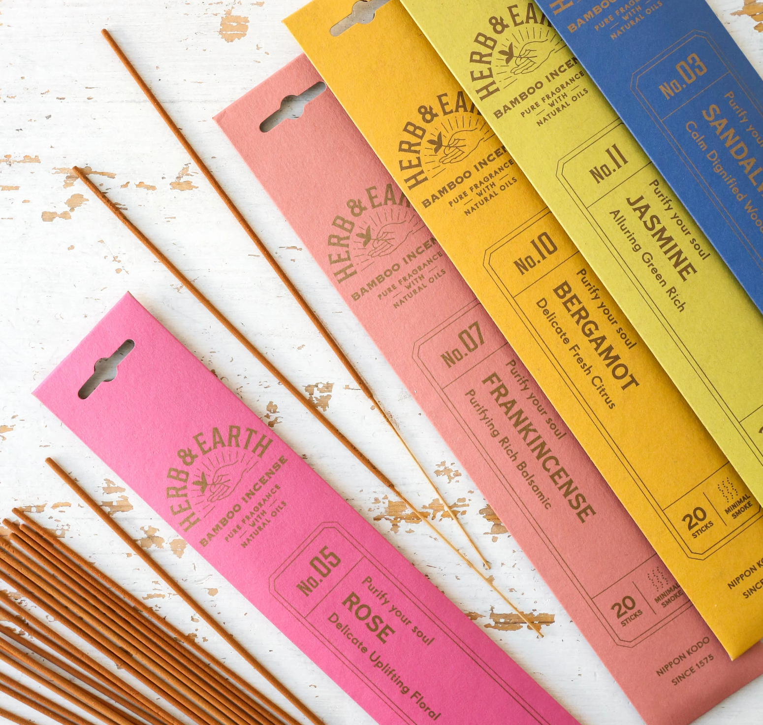 Handled the redesign of Herb & Earth bamboo incense packaging. The project involved updating a slightly outdated natural style to create a more casual, contemporary look. By incorporating distinctive fonts and printing on kraft paper, the design was dressed down to achieve a relaxed, organic feel.