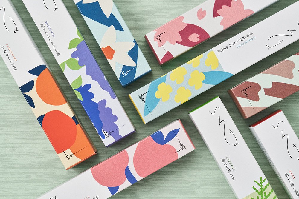 Designed the flagship product, Iroha, for Japanese incense brand Koju in kyoto. This project embraced a theme of nostalgic yet contemporary Japanese style, capturing the essence of traditional culture with a fresh, modern feel. The packaging design combines colorful patterns inspired by the look of summer yukata (traditional Japanese attire) with a fluid, handwritten-style Japanese product name, visually linking each scent to a unique and inviting image.